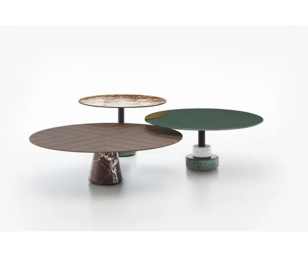 Menhir Mini — это естественное развитие коллекции низких столиков Menhir, узнаваемой по классической элегантности и изысканной мраморной отделке. Представленные в двух более компактных размерах, Menhir Mini сохраняют характерный для этой коллекции контраст материалов: столешницы из литого стекла с неровной поверхностью и яркими цветами сочетаются со скульптурной мощью мраморных боковин, доступных в трех различных конфигурациях. Композицию дополняет и уравновешивает тонкая и легкая стальная ножка, придающая дизайну точность.