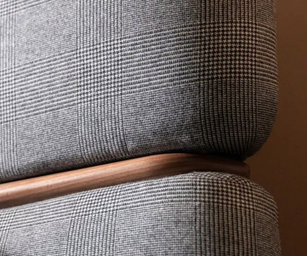 В одной из моделей изголовье из ткани Elite Collection гармонирует со вставками в изголовье кровати из орехового дерева canaletto, создавая изысканный баланс между материалами и деталями.