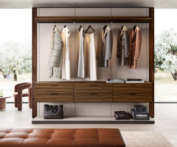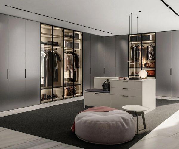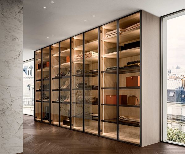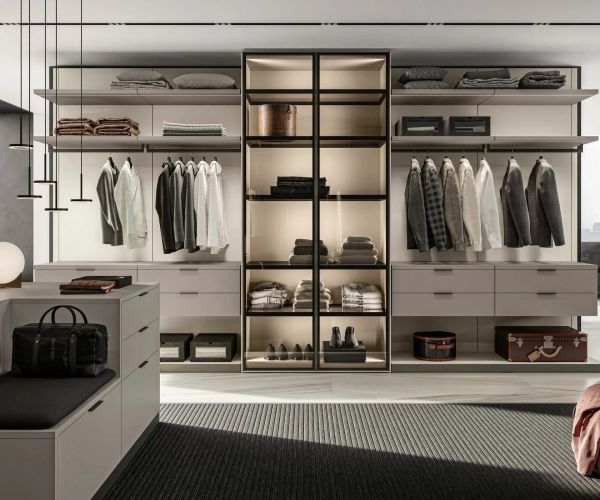 Ритм жизни за последние годы произвел революцию в эстетике и концепции пространств, превратив их в дизайнерские пространства с высокой эстетической ценностью. «Открытая» гардеробная, встроенная в спальную зону, становится манифестом нового образа жизни, основанного на прозрачности и отсутствии необходимости в уединении, в полном контакте с другими зонами дома.