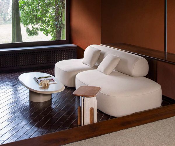 Архитектурный дизайн виллы, в которой происходила съемка предметов для каталога коллекции Unfolding, напоминает творения Скарпы и характеризуется большими, просторными окнами. С одной стороны – вид на парк, с другой – зелень небольшого тайного сада с маленькими кустарниками и вьющимися растениями, словно пересекающая границу между природным и искусственным пространством. Внутри листья уступают место обоям, дереву, и краскам теплых и нежных оттенков земли, окутывая стены, полы и ниши. Элементы единой комнаты без стен, отмеченной исключительно наличием диванов, кресел, скульптурных сидений, многофункциональных систем, а также кроватей и буфетов, отличающихся легкими объемами и стилизованным дизайном, который отдает предпочтение отсутствию граней и мягкости изогнутых линий. Приветливые и приятные, эти естественно элегантные предметы раскрывают свою красоту, перестраивая и переопределяя пространство с течением времени.