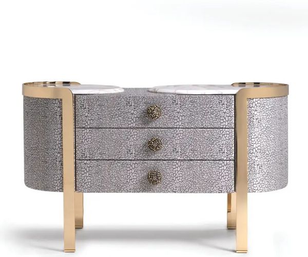 Ткань Shamal отличается уникальным переплетением и утонченной текстурой с неповторимой игрой света. Доступны два цветовых варианта: серый/серебристый, который придает современную и утонченную элегантность с тонкими металлическими отблесками, и теплый и обволакивающий бежевый/золотой, идеально подходящий для тех, кто хочет ощутить нотку классической и сияющей роскоши.