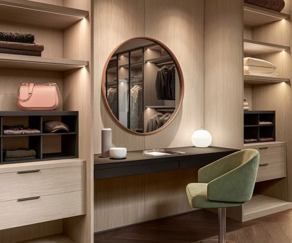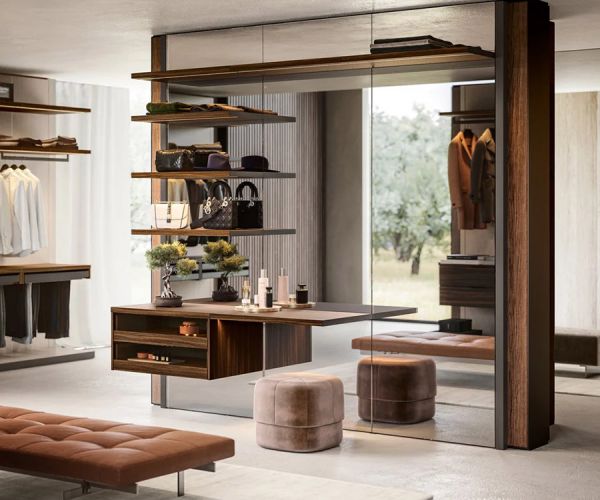 Ритм жизни за последние годы произвел революцию в эстетике и концепции пространств, превратив их в дизайнерские пространства с высокой эстетической ценностью. «Открытая» гардеробная, встроенная в спальную зону, становится манифестом нового образа жизни, основанного на прозрачности и отсутствии необходимости в уединении, в полном контакте с другими зонами дома.