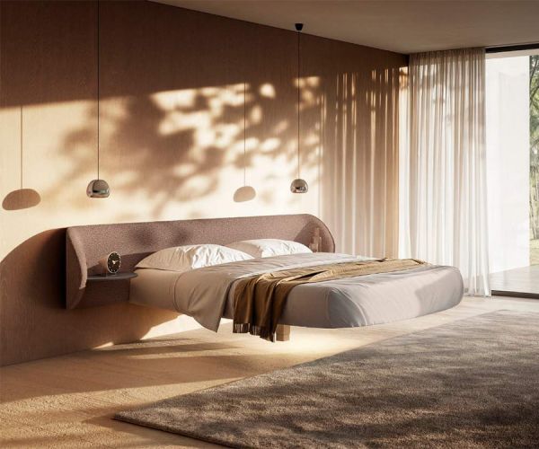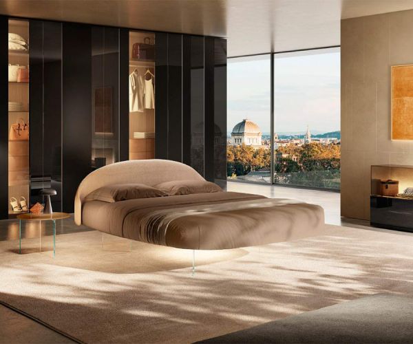 Благодаря своей округлой форме кровать Roundy Fluttua меняет восприятие пространства, делая передвижение по спальной зоне более плавным и создавая уютную атмосферу в комнате. Разработанная для обеспечения максимального комфорта, кровать Roundy Fluttua Fluttua сочетается с эксклюзивным матрасом, разработанным специально для кроватей LAGO, чтобы обеспечить оптимальную эргономику. Инновационное основание и единственная центральная опора, которые практически незаметны, усиливают эффект парения и подчеркивают его дизайн. Отличительной особенностью является изголовье кровати, доступное в двух вариантах исполнения: заподлицо с матрасом, чтобы дополнить его обволакивающий силуэт или настенный монтаж создают еще более впечатляющий визуальный эффект. Прикроватные тумбочки органичной формы, выполненные из натурального дерева или стекла, элегантно и функционально дополняют кровать.